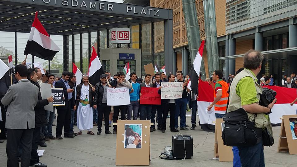 نظم أبناء الجالية اليمنية في برلين عاصمة ألمانية الاتحادية اليوم وقفة احتجاجية ضد العدوان السعودي الامريكي الغاشم على اليمن.
