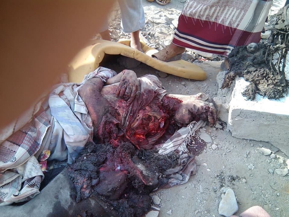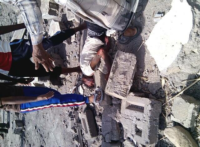 حجة : 40 شهيداً وعشرات الجرحى من المدنيين حصيلة اولية لمذبحة ارتكبها الطيران السعودي الامريكي صباح اليوم في عاهم ” صور “