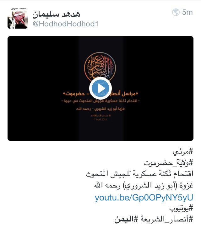 المقاطع الداعشية Last updated يناير 19, 2016 635 Share المقاطع الداعشية زادت في حضرموت !!! يقتلون الابرياء هناك !!! ثم يقولون ابناء القبائل او مقامة شعبية او تحالف قبيلي .. منقول من صفحة سندباد اليمن 635 Share FacebookTwitterGoogle+ReddItWhatsAppPinterestEmail