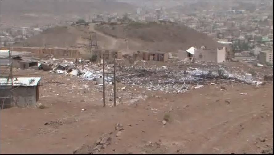 وشنت طائرات العدوان قبل مغرب اليوم الثلاثاء 19مايو / آيار 2015 غارتين جويتين على سفح جبل نقم شرق العاصمة صنعاء في منطقة شديدة الكثافة السكانية .