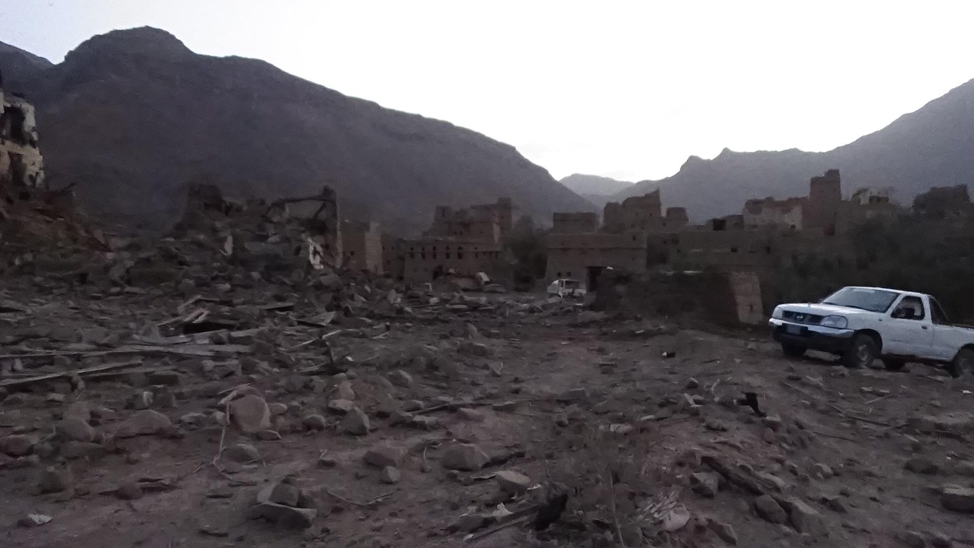 24 جثة لنساء واطفال و3 رجال لاتزال تحت انقاض 7 منازل في منطقة صبر ” سحار -بني معاذ ” عجزت فرق الانقاذ عن انتشالهم بسبب تجدد الغارات العدوانية على المنطقة.