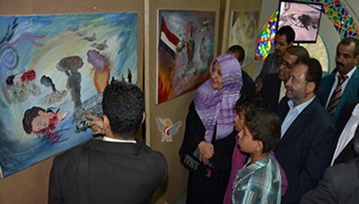 وذكرت بأن المعرض يوجد فيه قسمين الاول خاص برسومات الفن التشكيلي ورسوم الاطفال والذي يعبر عن صمود الشعب اليمني وتغلبه على هذا العدوان الهمجي الغاشم بالإرادة والصبر والثاني، وصور فوتوغرافية تحكي حجم الدمار الذي خلفه القصف الجوي لطائرات العدوان السعودي واستهدافه للأرض والإنسان.
