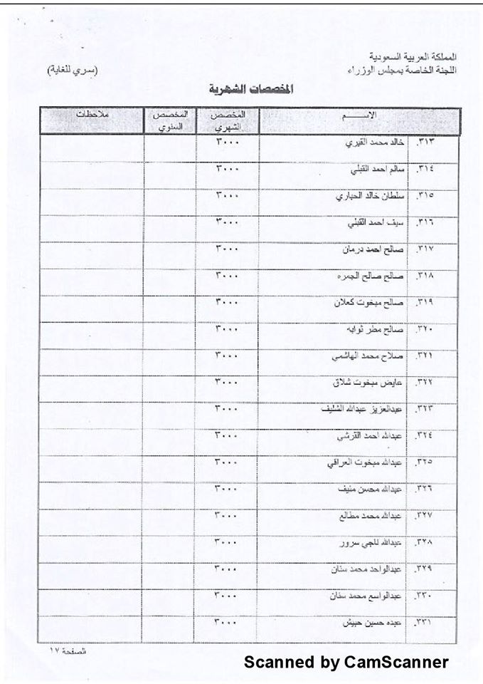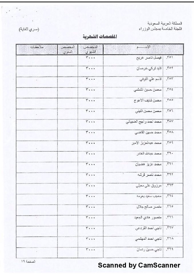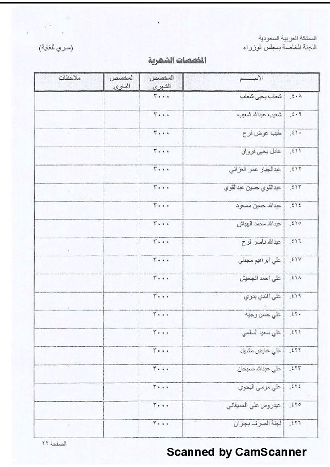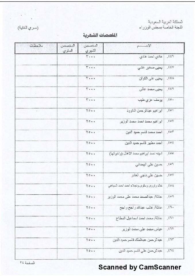 وأشار التقرير إلى أن 420 فرداً من آل حميد الدين کانوا يستلمون مليوناً ومائتي ألف ريال سعودي شهريا.