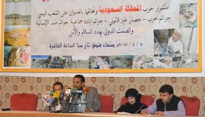 وأكد الائتلاف في مؤتمر صحفي عقد بصنعاء اليوم السبت 08/أغسطس/2015 لاستعراض التقرير الدوري الـ 18 لجرائم العدوان السعودي على اليمن أن المناطق الريفية البعيدة عن مركز المدن تعيش حالة كارثية ووضع إنساني صعب في المجال الصحي والغذائي.