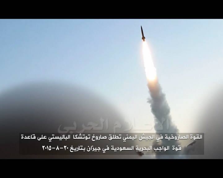 وفي سياق التطورات الميدانية، أطلق الجيش واللجان الشعبية الخميس 20 أغسطس 2015م صاروخاً باليستياً من نوع “توتشكا” على قوة الواجب البحرية أكبر قاعدة عسكرية في جيزان، فيما تمكنت وحدات من الجيش واللجان الشعبية من تدمير ثلاث آليات عسكرية سعودية بالمنطقة، كما دمرت أيضا ثلاثة أطقم عسكرية سعودية و “بي. إم. بي” في موقع القمبور العسكري السعودي بجيزان ومصرع من كانوا على متنها جميعاً .