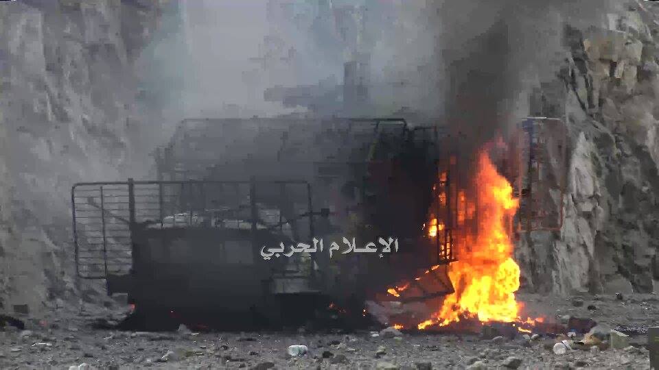 وفي اطار العملية العسكرية المتواصلة على تحركات مرتزقة العدوان ومليشيا القاعدة والمدعومة من قبل السعودية في محافظة البيضاء وجهت قوات الجيش واللجان الشعبية امس الثلاثاء ضربات نارية مكثفة على وتحركات وآليات العناصر الإرهابية ومرتزقة المدعومة من السعودي واثر محاولتها التقدم باتجاه عقبة لودر قضت خلالها على عدد من تلك العناصر وكميات من الاسلحة والذخائر وتحقيق اصابات مباشرة في صفوفهم وألياتهم المدرعة وفرار من تبقى.