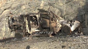 شاهد حطام طائرة استطلاعية جرى تدميرها وعدد من الآليات والمدرعات الإماراتية في محافظة البيضاء – مرفق صور للطائرة والعربات المدمرة