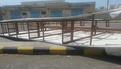 وذكر شهود عيان ان تدخل العناية الالهية انقذ المتواجدين من المارة وسائقي المركبات والدراجات النارية من موت محقق بعد سقوط لوحة اعلانية تجارية مساحتها خمسة امتار بعد سقوطها في جولة شارع 26 سبتمبر – الميناء . نتيجة موجة الغبار والرياح الشديدة التي تشهدها الحديدة خلال هذه اليومين.