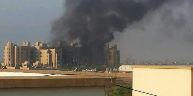 وشوهدت اعمدة الدخان وألسنة اللهب تتصاعد من داخل فندق القصر بعدن.