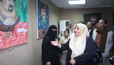 وطافت القائمة بأعمال الوزير ومعها رئيس المنتدى خالد الجنيد ورئيس الجبهة الوطنية لمواجهة العدوان الدكتورة ابتسام المتوكل باجنحة المعرض الذي يضم نحو 40 لوحة تشكيلية من الكريلك من إبداع 9 فنانين تشكيليين تجسد في محتواها بشاعة القبح ورموز الطغيان والمرتزقة الذين أيدوا وساعدوا العدوان الهمجي الغاشم على اليمن واستهداف المدنيين والابرياء والتي تأتي ضمن مسلسل جرائم الابادة الجماعية التي اقترفها ويقترفها العدوان السعودي الغاشم على اليمن ارضاً وإنساناً وحضارة وتاريخ ومنشئات وبنى تحتية وذلك منذ أكثر من 7 أشهر مضت، أسفرت في حصيلة أولية عن استشهاد وجرح اكثر من 20 ألف مدنيا معظمهم من النساء والأطفال .