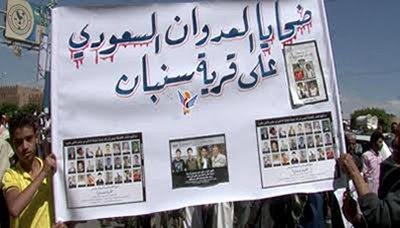 المشاركون في التظاهرة التي دعت لها المنظمات الحقوقية والمدنية أمام مقر الأمم المتحدة بصنعاء، نددوا باستمرار القصف السعودي وقتل اليمنيين الأبرياء ورفعوا اللافتات المنددة باستمرار العدوان السعودي والحصار الجائر المفروض على الشعب اليمني والمطالبة بإجراء تحقيق دولي حول العدوان السعودي على اليمن والجرائم المرتكبة.