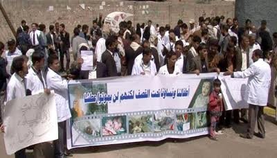 نفذ الأطباء والكوادر الصحية من مختلف محافظات الجمهورية وقفة احتجاجية اليوم أمام مكتب الأمم المتحدة بصنعاء للمطالبة بوقف العدوان السعودي ورفع الحصار الجائر وتسهيل دخول المواد الإغاثية والأدوية والأغذية والمحروقات وغيرها من السلع الحيوية.