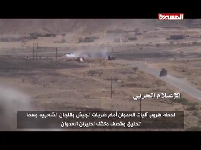 وانطلاقا من جبل الاشقري تقدمت مجاميع المرتزقة بالآليات والمدرعات بغطاء جوي مكثف باتجاه مواقع الجيش واللجان في منطقة كوفل حيث أمطرهم أبطال الجيش واللجان بالقذائف والصواريخ واجبروهم على العودة.