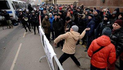 وحافظت السلطات الأمنية الروسية على النظام في مكان التظاهر.