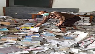 غارات العدوان تتلف 15 ألف عنوان من أهم المؤلفات العالمية في المكتبة المركزية بمحافظة حجة