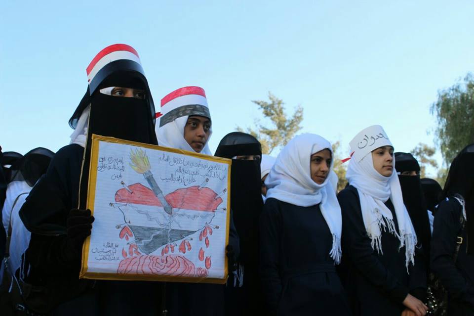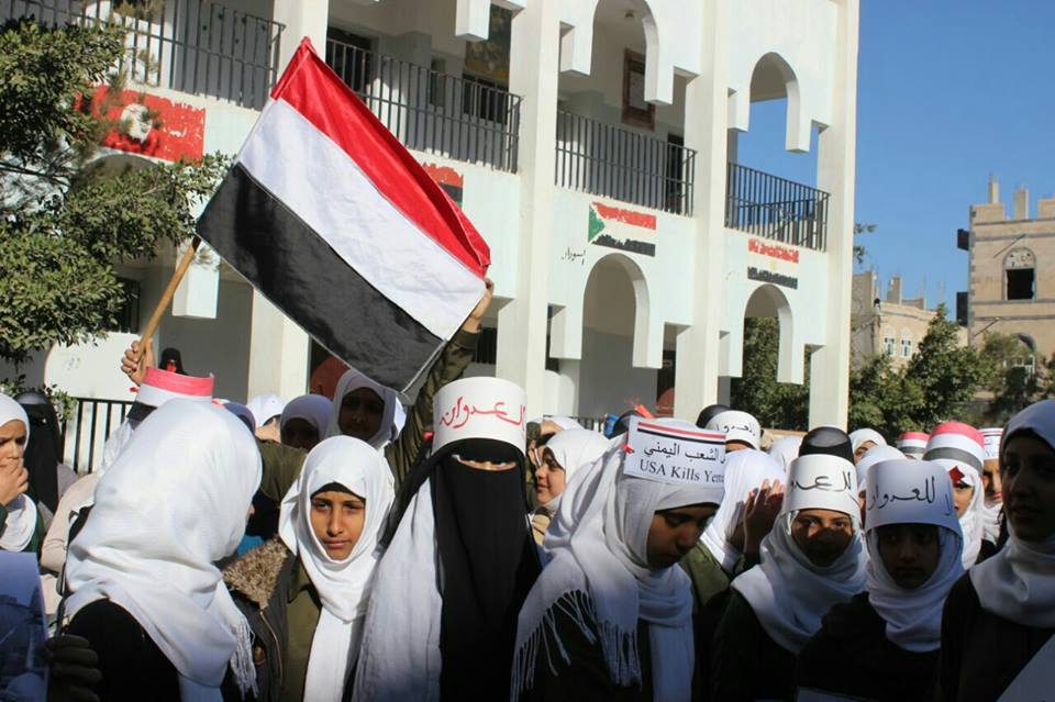 نظمت طالبات ومعلمات مدرسة خديجة بنت خويلد بمديرية السبعين أمانة العاصمة ، اليوم الاحد 7 فبراير 2016 ،إذاعة صباحية ووقفة احتجاجية ضمن حملة “أمريكا تقتل الشعب اليمني” .
