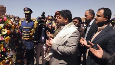 رئيس اللجنة الثورية العليا يضع إكليل الزهور بروضة الشهداء بمنطقة الجراف بصنعاء