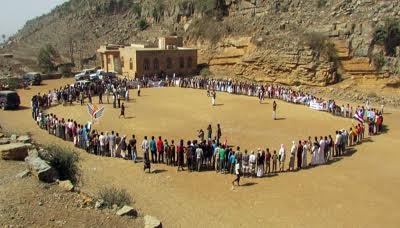 وقفة إحتجاجية للتنديد بجرائم العدوان السعودي الأمريكي بعزلة بني عمارة بمديرية خبت المحويت