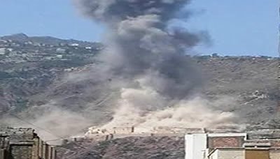طيران العدوان السعودي يشن سلسلة غارات على النشمة والستين بتعز