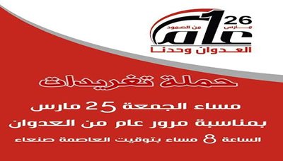 الليلة إنطلاق حملة عاصفة تغريدات عام من العدوان على اليمن