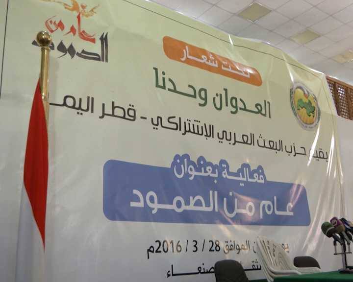 نظم حزب البعث العربي الإشتراكي اليوم الإثنين بالعاصمة صنعاء فعالية بعنوان “عام من الصمود” والتي تهدف إلى التذكير بجرائم العدوان بحق اليمنيين طوال عام كامل مع الإشادة بالصمود الذي تحلى به اليمنيون خلال هذه الفترة تحت شعار العدوان وحدنا.
