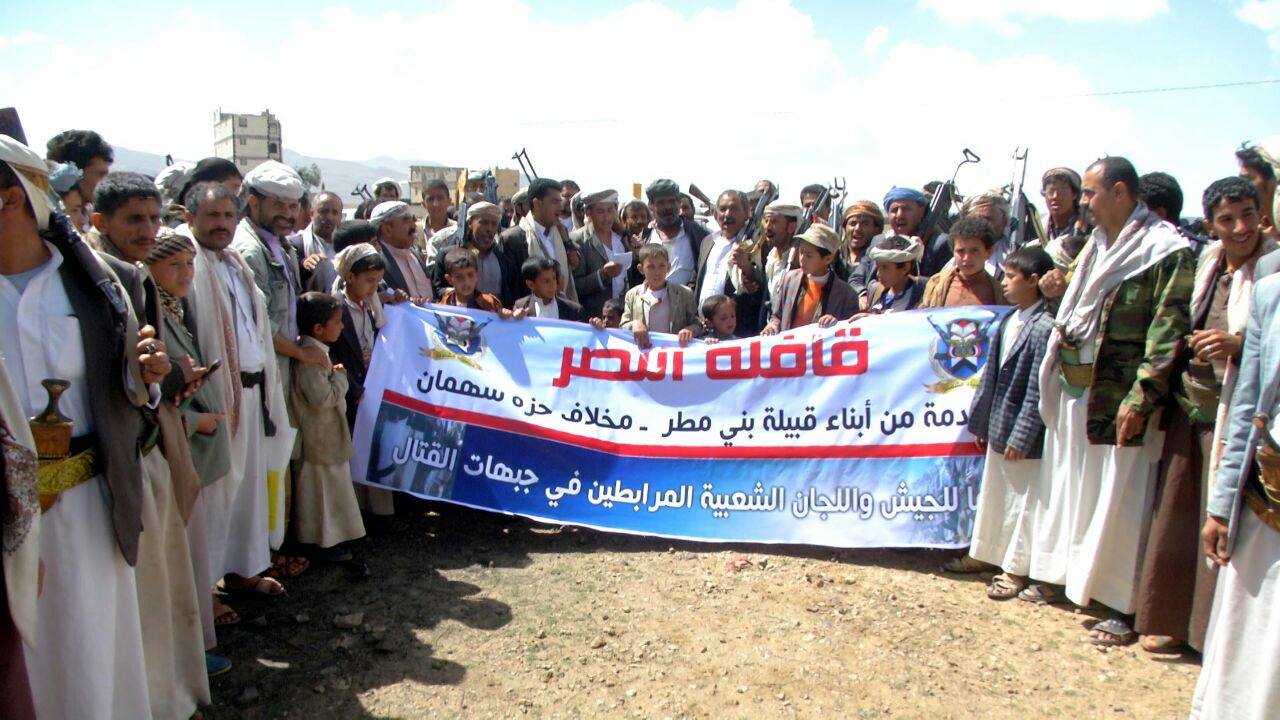 سير أبناء قبيلة بني مطر في محافظة صنعاء صباح اليوم الثلاثاء قافلة دعم ومساندة للمجاهدين من أبناء الجيش واللجان الشعبية المرابطين في جبهات الشرف والبطولة والدفاع عن الوطن وسيادته في مواجهة قوى الاحتلال والغزو وعناصر القاعدة والمرتزقة .