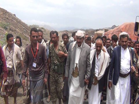 محافظ تعز يتفقد أحوال المواطنين في مديرية شرعب الرونة ويدشن مشروع الإغاثة