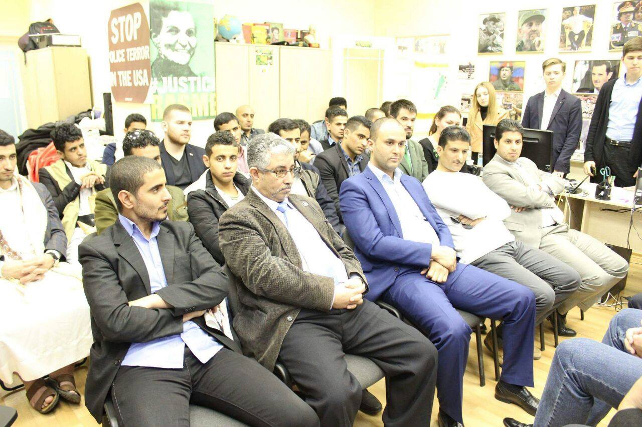 أقيمت في العاصمة الروسية موسكو ندوة ومعرض لصور جرائم العدوان السعودي الأمريكي على اليمن نظمتها الجالية اليمنية والطلاب الدارسون في روسيا برعاية من المنظمة المناهضة للعولمة في روسيا الاتحادية.