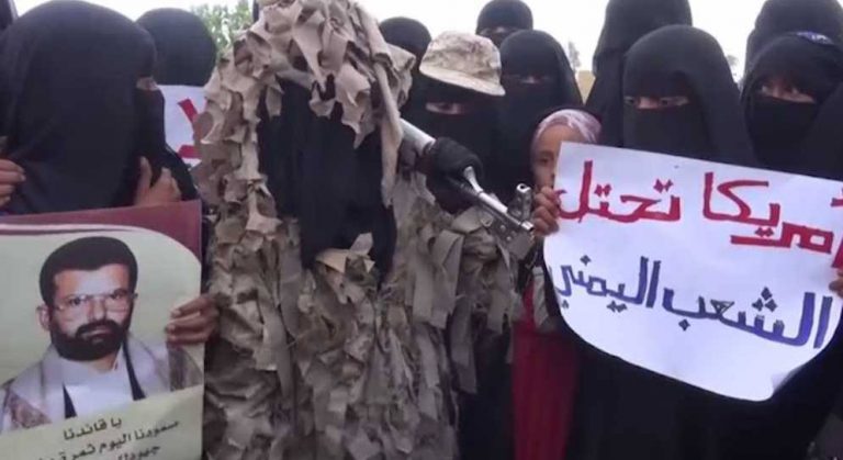 ورددن المشاركات في الوقفة الهتافات، ورفعن فيها اللافتات الرافضة للتواجد الأمريكي، مؤكداتٍ على مدى الجهوزية القتالية لدى حرائر اليمن .