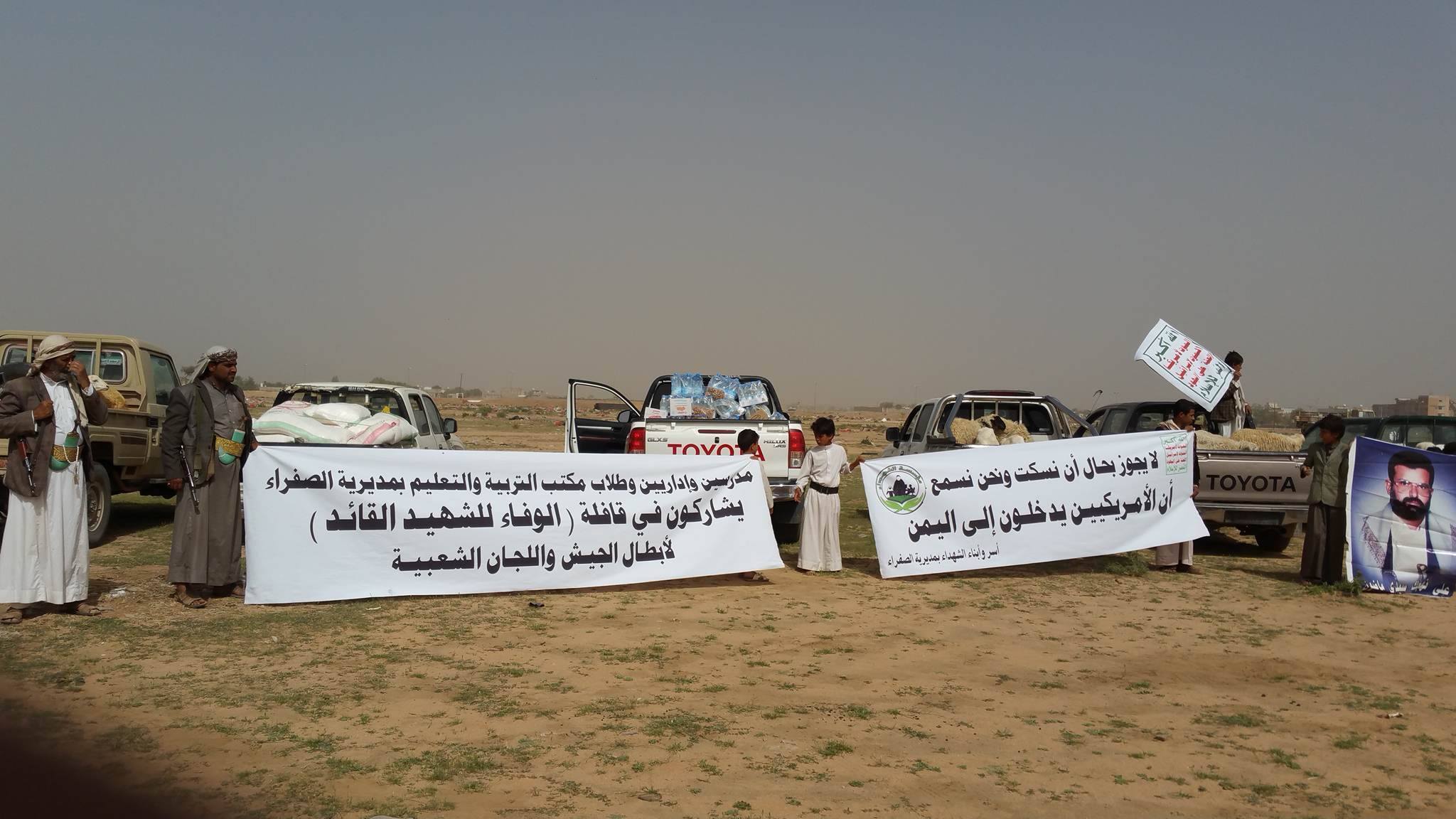 وقال المنظمون أن القافلة المقدمة من أبناء مديرية الصفراء بمحافظة صعدة والتي تحتوي على كميات كبير من المواد الغذائية المتنوعة والمواشي ومبالغ مالية ليست الأولى ولن تكون الأخيرة التي سيقدمها أبناء المديرية لإسناد المجاهدين في ميادين الدفاع عن الوطن وسيادته .