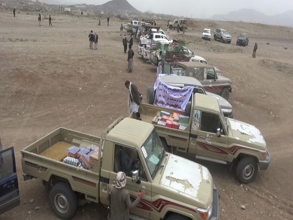 قبائل صنعاء تسير قافلة غذائية كبرى وتندد بالتواجد الأمريكي في اليمن ( صور )