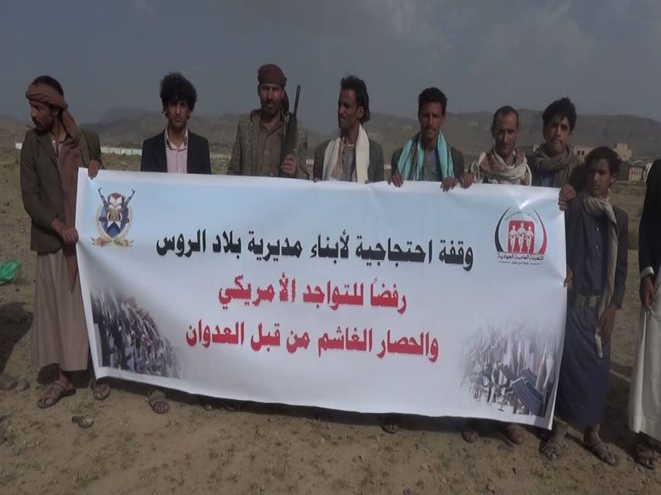 نظم أبناء مديرية بلاد الروس بمحافظة صنعاء عصر اليوم الأربعاء وقفة احتجاجية تنديداً باستمرار العدوان والحصار وتأكيداً على الجهوزية التامة والاستعداد للدخول في مرحلة جديدة من مراحل الصمود ومواجهة العدوان السعودي الأمريكي.