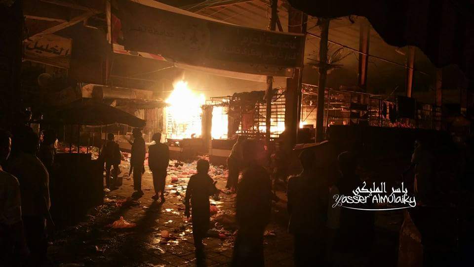 وأوضحت المصادر أعداد كبيرة من المرتزقة تتبع المدعو ” صادق سرحان ” أقدمت على إحراق سوق ديلوكس رداً على مقتل أبن شقيقه المدعو ” عماد سرحان ” وعدد من مرافقيه خلال المواجهات التي اندلعت بالقرب من سوق ديلوكس.