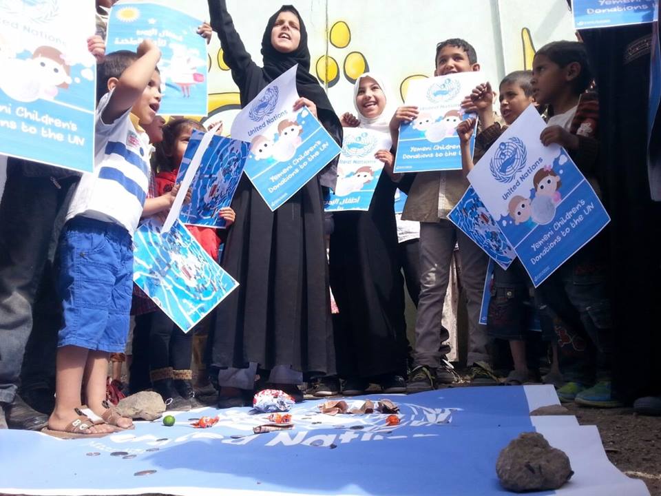أطفال ذمار يستكرون الموقف المخزي للأمم المتحدة ويدعمون خزينتها بتبرعاتهم أملاً في أن تكف عن المتاجرة بدمائهم