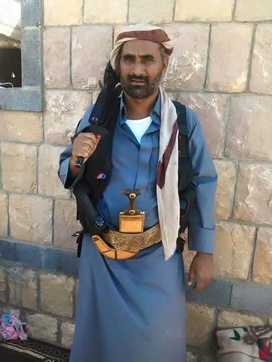 الصورة لخالد الأقرع القيادي البارز في مرتزقة العدوان بمديرية نهم شقيق الصريع خالد الأقرع