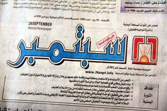 كذب مصدر مسئول في هيئة تحرير صحيفة “26سبتمبر” ما روج له بعض المرجفين من مزاعم ومعلومات مضللة للرأي العام عن حذف أهداف ثورة الـ”26 من سبتمبر” المجيدة في عدد الصحيفة الأخير الصادر يوم الخميس الموافق 8 سبتمبر 2016.