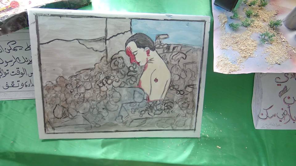 واحتوت المعارض عدداً من الأعمال الفنية والتشكيلية التي جسدت مناسبة المولد النبوي وأظهرت علاقة الشعب اليمني بالرسول محمد صلوات الله عليه وعلى آله وكذا جزء من الدمار الذي تعرضت له المحافظة خصوصاً المدارس عبر رسومات وأعمال يدوية .