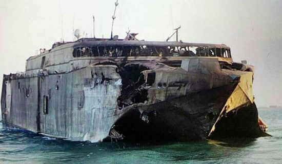 مصدر عسكري يؤكد إصابة بارجة حربية لتحالف العدوان بصاروخ موجّه