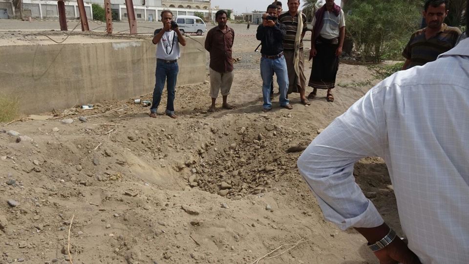 صور لآثار الصاروخ الذي استهدف ميناء الحديدة :