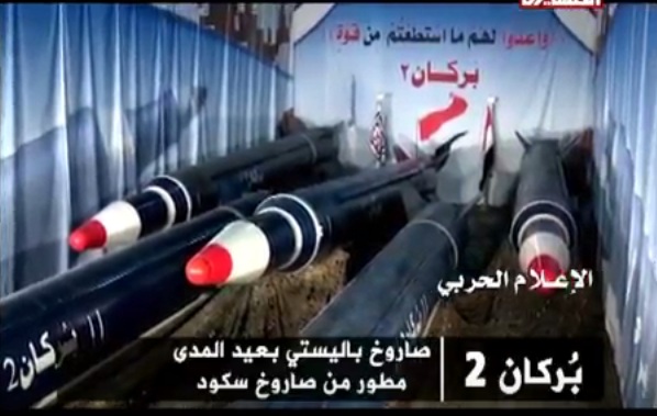 وأشارت إلى أن بركان 2 تم تطويره في مركز الأبحاث والتطوير التابع للقوة الصاروخية اليمنية وبخبرات وطنية بحته.