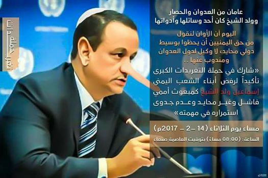 ولفت المنظمون إلى أن ولد الشيخ وعلى مدى عامين كان أحد وسائل العدوان وأدواته ، مؤكدين بأن “الأوان قد حان لنقول من حق اليمنيين أن يحظوا بوسيط دولي محايد” ، لا كما وصفوه بـ “وكيل لدول العدوان ومندوب عنها.”