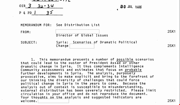 مذكّرة سرّية لـ”سي آي اي” من عام 1986 تضمنت سيناريو الحرب على سورية كما تحدث اليوم تماما