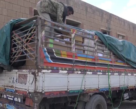 صور للشاحنة والأدوية المُهرّبة التي كانت بداخلها بعد ضبطها من قبل الأجهزة الأمنية واللجان الشعبية اليوم في رداع