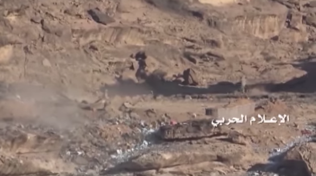 وتُظهر المشاهد فرار عدد من العسكريين السعوديين بعد أن تم استهداف تجمعهم بصاروخ موجه، وتقدم أحد أبطال الجيش اليمني واللجان الشعبية إلى الموقع الذي كانوا يتواجدون فيه وإحراقه لطقم عسكري.