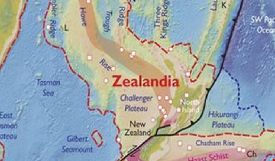 علماء يكتشفون قارة ثامنة يقع 94% منها تحت الماء وتبلغ مساحة اليابسة فيها 4.5 مليون كليومتر مربّع ولا يظهر منها فوق السطح إلا أعلى نقطتين وهما نيوزيلندا وكاليدونيا الجديدة.