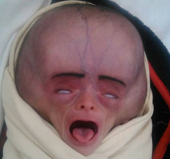 بالصور| مواليد يمنيين مصابين بتشوهات خلْقيَّة بفعل القنابل التي يُلقيها طيران العدوان