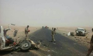 وقال مصدر محلي لموقع ” متابعات ” : أن سيارة من نوع ” هيلوكس ” اصطدمت في أحد أطقم تحالف العدوان في منطقة الوضيح شمال شرق صافر كانوا في طريقهم من الوديعة إلى مأرب ما أدى إلى وفاة أربعة مواطنين ممن كانوا على السيارة الهايلوكس فيما لقي 3 ضباط اماراتيين مصارعهم وجرح آخرين حالة أحدهم بالخطرة .