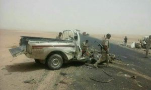 وقال مصدر محلي لموقع ” متابعات ” : أن سيارة من نوع ” هيلوكس ” اصطدمت في أحد أطقم تحالف العدوان في منطقة الوضيح شمال شرق صافر كانوا في طريقهم من الوديعة إلى مأرب ما أدى إلى وفاة أربعة مواطنين ممن كانوا على السيارة الهايلوكس فيما لقي 3 ضباط اماراتيين مصارعهم وجرح آخرين حالة أحدهم بالخطرة .