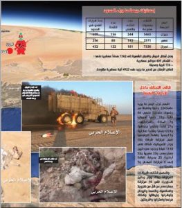 وإذ اعتمد تحالف العدوان الأمريكي السعودي على الآليات العسكرية الحديثة والطائرات المتنوعة، تمكن أبطال الجيش واللجان الشعبية من تدمير ما يزيد على 16.719 آليةً عسكرية مختلفة بين دبابة ومدرعة ومصفحة وكذا جرافة وشيول، من ضمنها ما يزيد على4923 آليةً عسكريةً متنوعة في نجران وجيزان وعسير.