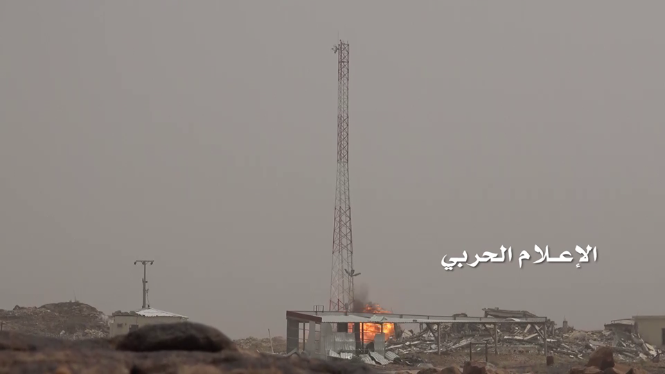 وزّع الإعلام الحربي اليمني اليوم الأربعاء مشاهد لتفجير برج الاتصالات في موقع المسيال العسكري السعودي بقطاع عسير.